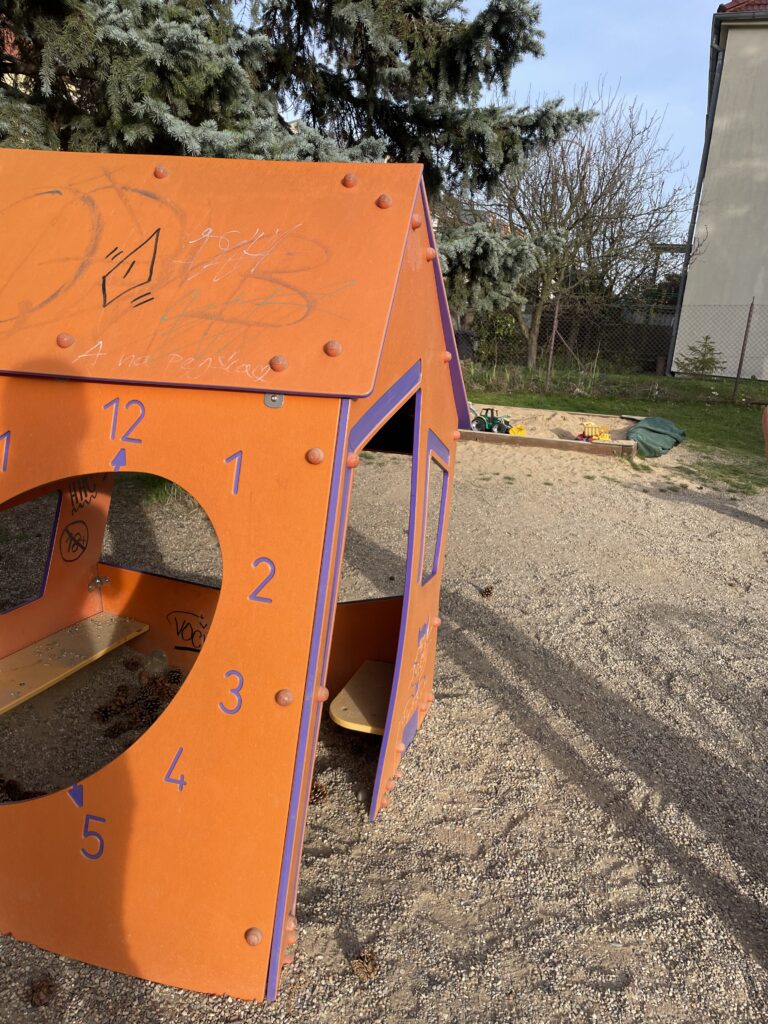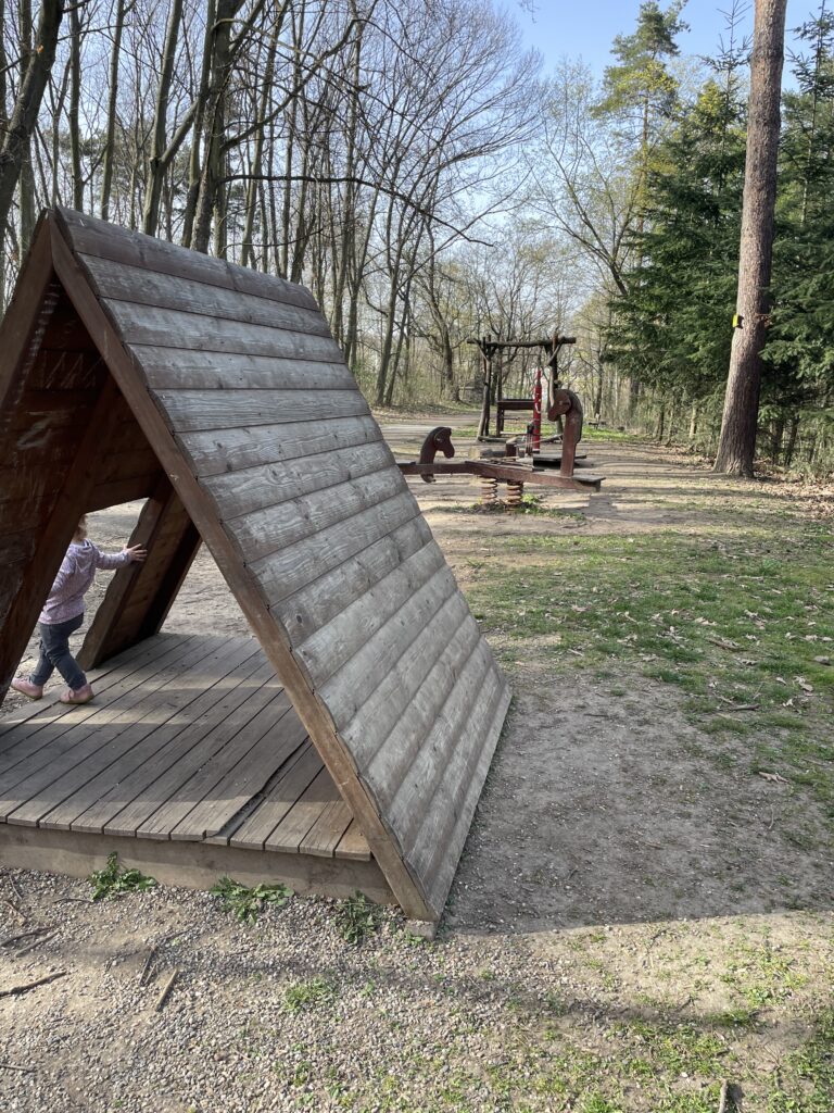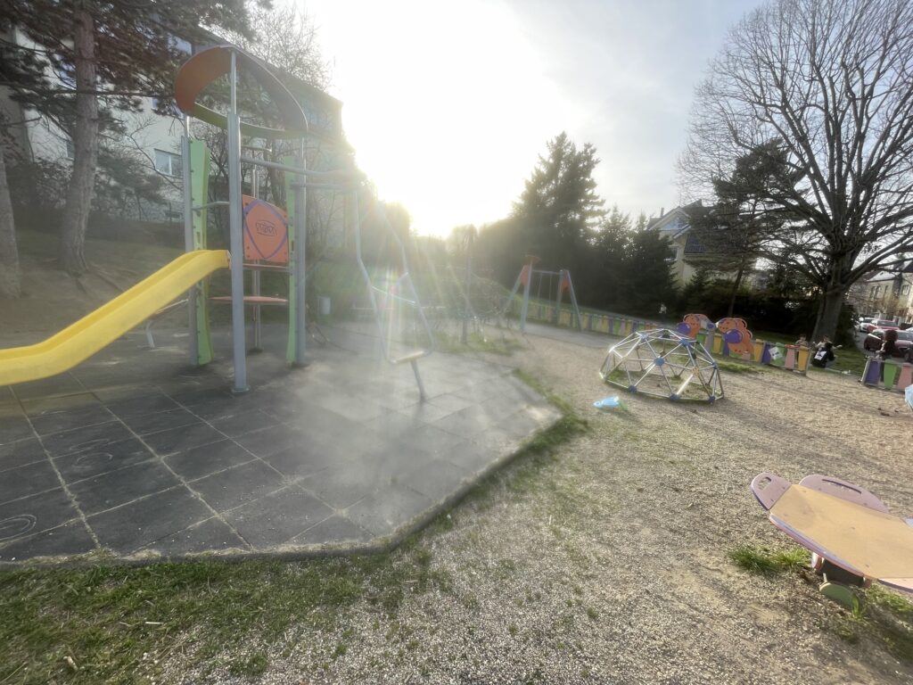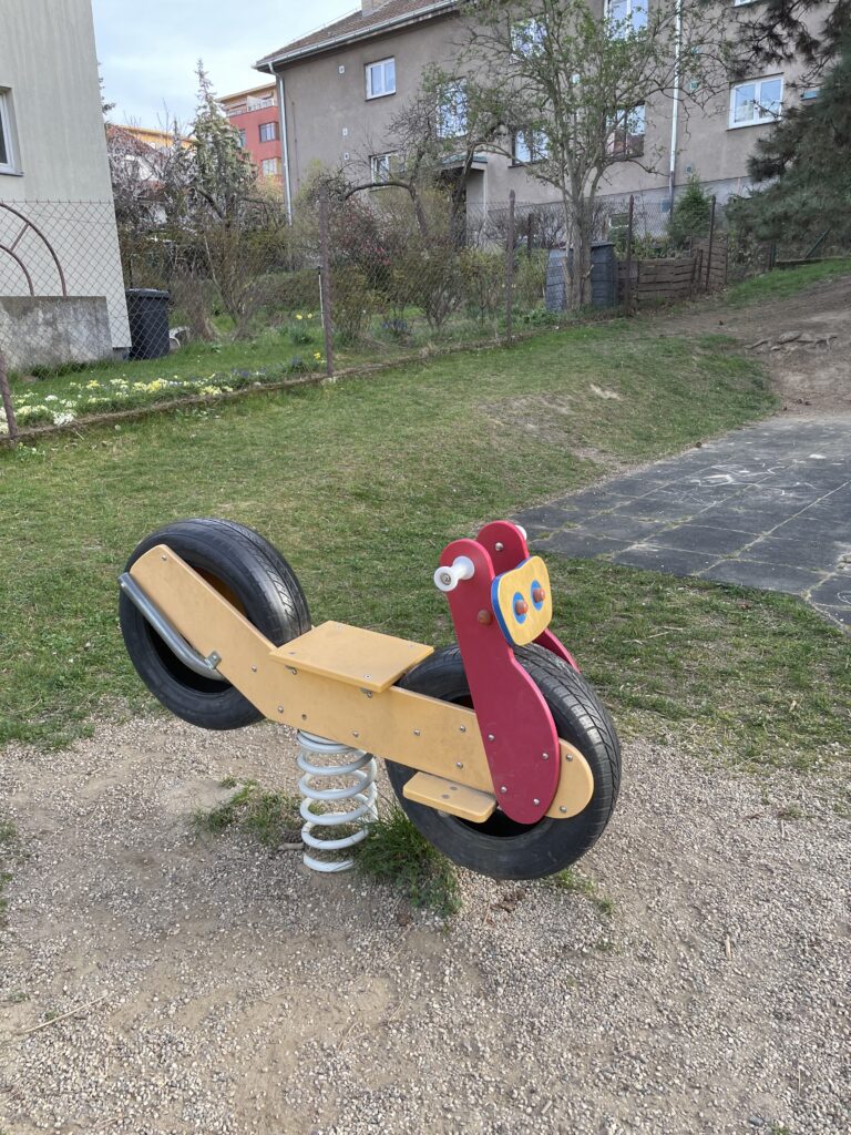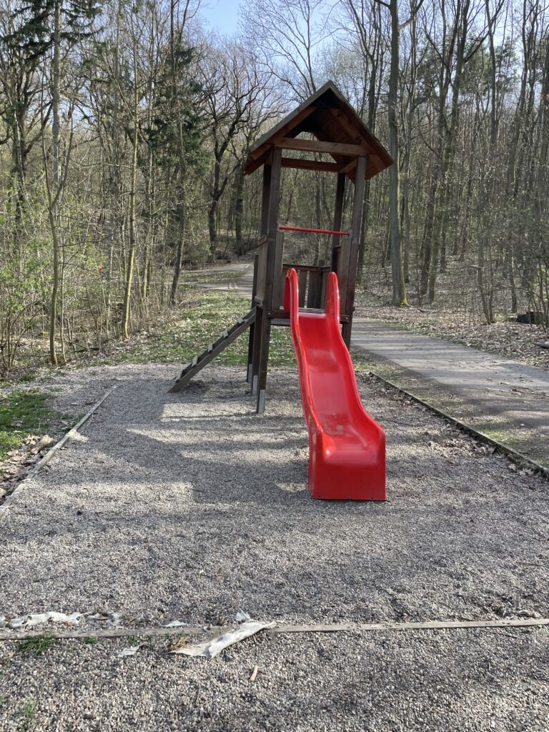 Naše první zastávka byl menší rybníček „Pod Dianou“, kde jsou k vidění kachny a ryby. Dále jsme se přes menší můstek vydali do mírnějšího kopce, kdy jsme asi po cca 250 metrech došli k dětskému hřišti. Nachází se zde klouzačka (pomalý dojezd), domeček, kolotoč, a houpačky). Blízko u hřiště je pár laviček, akorát si dejte pozor, v době, kdy jsme tam byli my, měly u laviček hnízdo vosy a bylo jich tam poměrně hodně. Na hřiště naštěstí nelétaly. Z hřiště je také možné zahlédnout jedoucí mašinky.