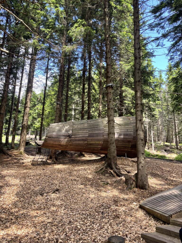 Z ApartBene vyrazíte autem do Velké Úpy (cca 40 min), lanovkou se vyvezete na Portášovy boudy (Parkoviště P5 – Velká Úpa, náměstí je kousek od lanovky za 250 Kč/den. Případně lze využít parkoviště pod bývalou poštou za 200 Kč/den, k lanovce je to pak cca 500 m a bonusem je kousek vzdálené hezké dětské hřiště.), odtud vás čeká cca 5 min pohodová procházka k Herní krajině Pecka. Park je otevřený od jara do podzimu, vstupné zdarma a zábava téměř celodenní – skvělý výlet pro rodiny s dětmi!