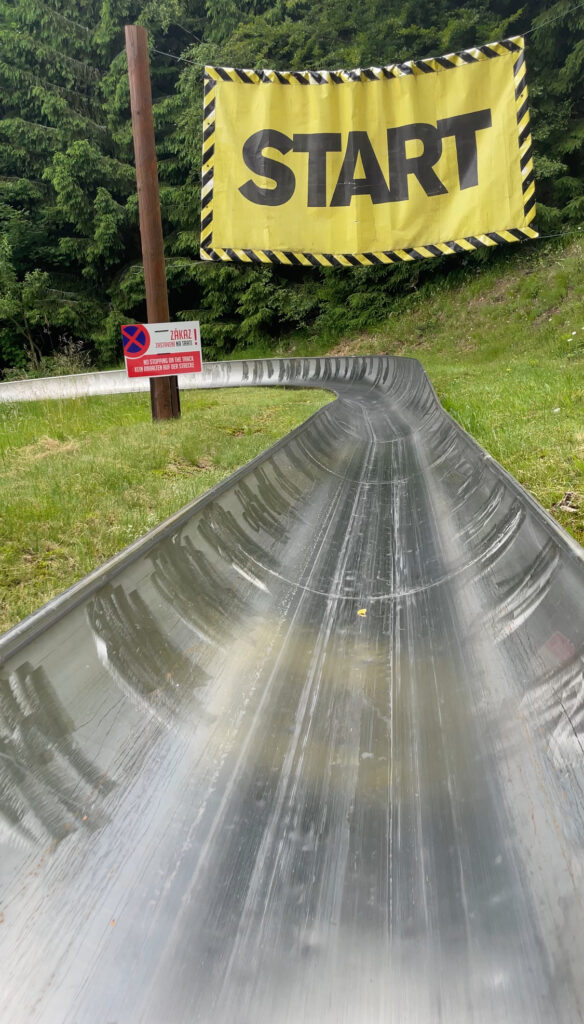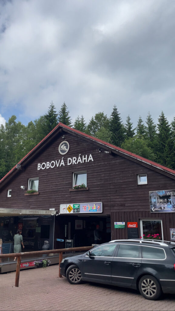 My si výlet zpestřili ještě bobovou dráhou. Je korýtková, z té máme trochu respekt, ale jeli jsme opravdu pomalu a zvládli to i se skoro tříleťákem, který si to užil :).