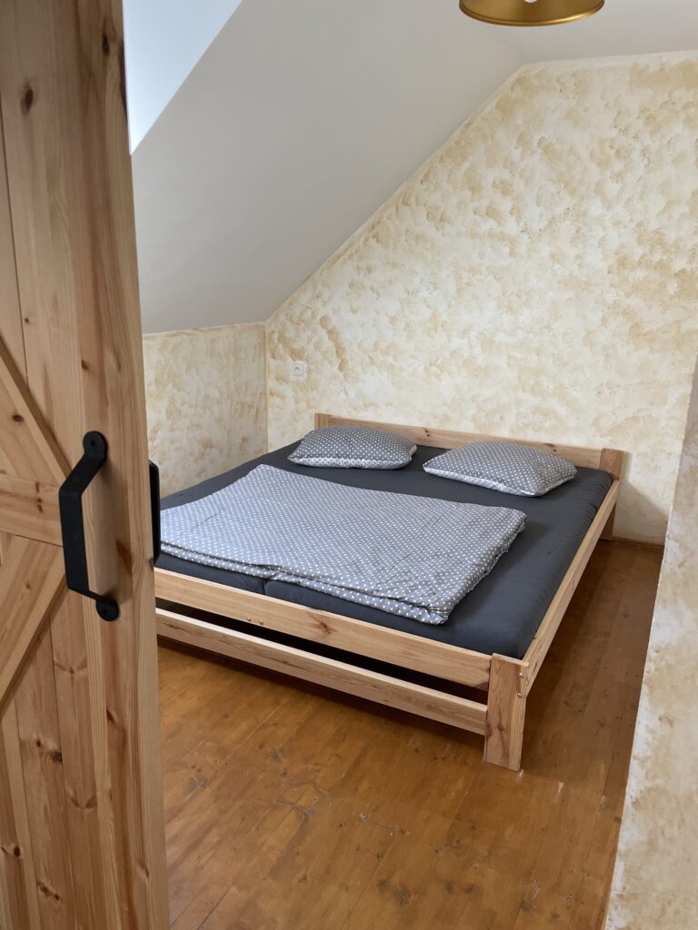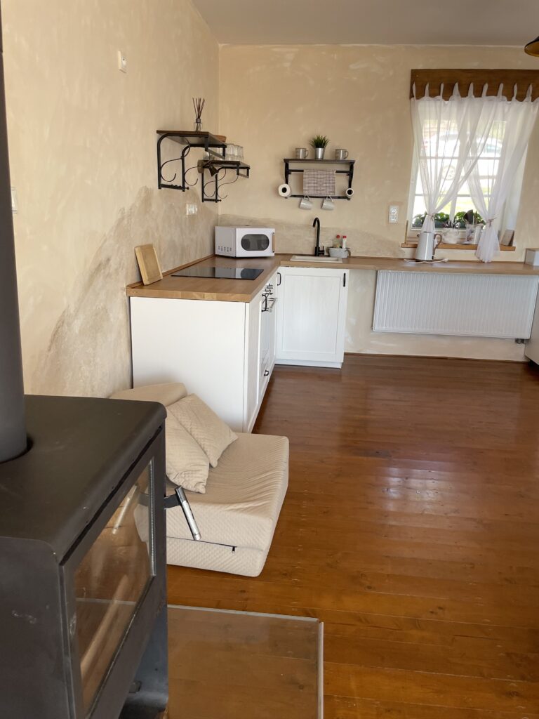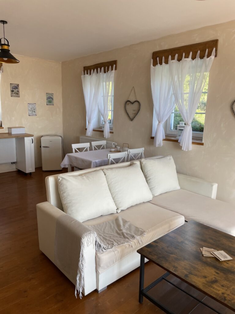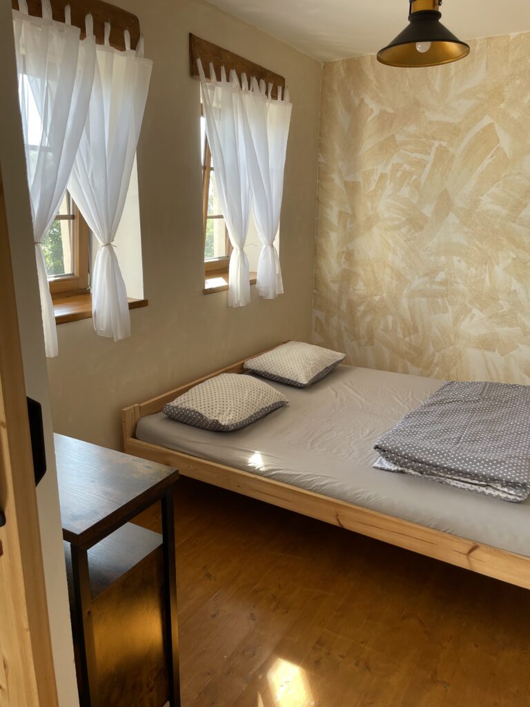 V chaloupce je v přízemí jeden větší apartmán Pepík pro 2+2+1 osoby, který má vybavenou kuchyň, toaletu se sprchou, obývák s kamny, ložnici a vlastní terasu. V prvním patře poté najdete 3 další apartmány. Apartmán Ondrášek pro 2+2 osoby, který má vybavenou kuchyň, toaletu se sprchou, obývák s TV a ložnici. Dále apartmán Viktorka pro 2+2 osoby, který má vybavenou kuchyň, toaletu se sprchou, obývák s TV a ložnici. A poslední apartmán Matýsek pro 2+2 osoby, který má vybavenou kuchyň, toaletu se sprchou, obývák s TV a ložnici. K dispozici je na patře 1 dětská židlička. Na každém apartmánu je nočník a dětské WC prkénko, dětské plastové nádobí. Můžete si také půjčit koupací kyblík pro miminko a dětské postýlky. Využít můžete přenosnou klimatizaci, elektrický odpuzovač hmyzu do zásuvky a v horních apartmánech určitě oceníte zatemňovací rolety. Mají tu i bezpečnostní zábrany na schodech a pračku k dispozici :).