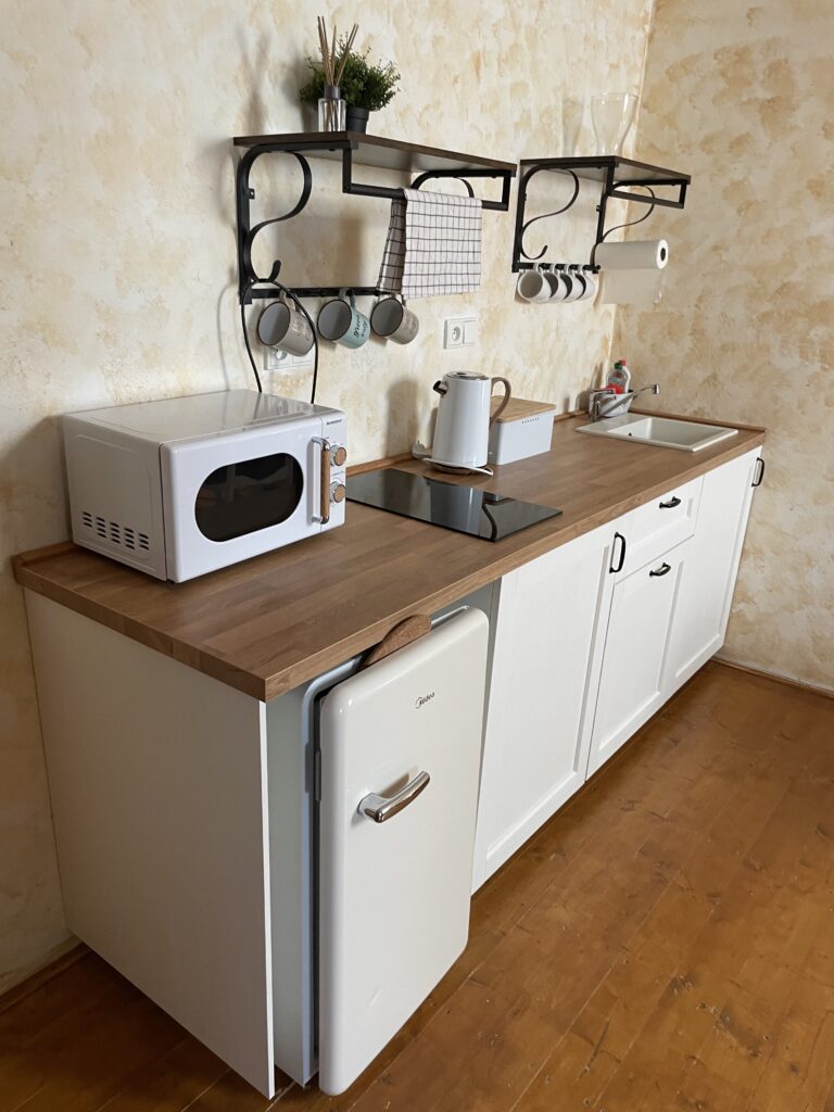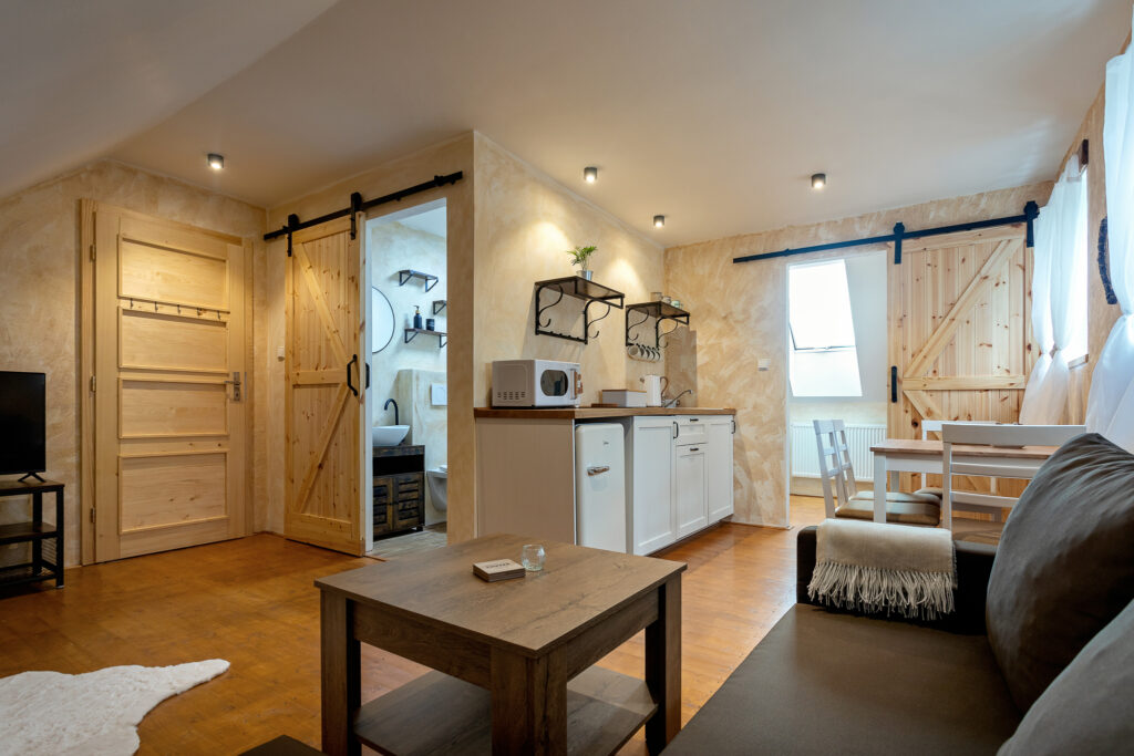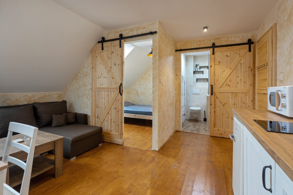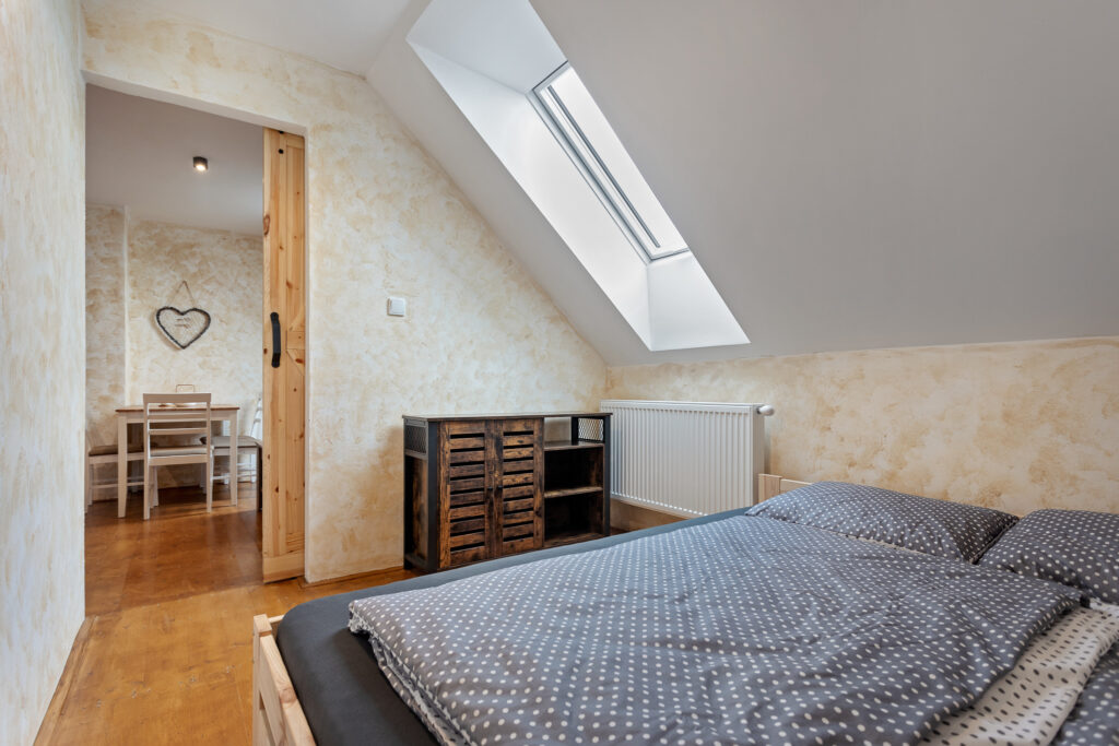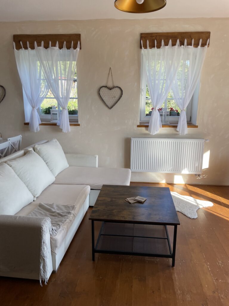 V chaloupce je v přízemí jeden větší apartmán Pepík pro 2+2+1 osoby, který má vybavenou kuchyň, toaletu se sprchou, obývák s kamny, ložnici a vlastní terasu. V prvním patře poté najdete 3 další apartmány. Apartmán Ondrášek pro 2+2 osoby, který má vybavenou kuchyň, toaletu se sprchou, obývák s TV a ložnici. Dále apartmán Viktorka pro 2+2 osoby, který má vybavenou kuchyň, toaletu se sprchou, obývák s TV a ložnici. A poslední apartmán Matýsek pro 2+2 osoby, který má vybavenou kuchyň, toaletu se sprchou, obývák s TV a ložnici. K dispozici je na patře 1 dětská židlička. Na každém apartmánu je nočník a dětské WC prkénko, dětské plastové nádobí. Můžete si také půjčit koupací kyblík pro miminko a dětské postýlky. Využít můžete přenosnou klimatizaci, elektrický odpuzovač hmyzu do zásuvky a v horních apartmánech určitě oceníte zatemňovací rolety. Mají tu i bezpečnostní zábrany na schodech a pračku k dispozici :).