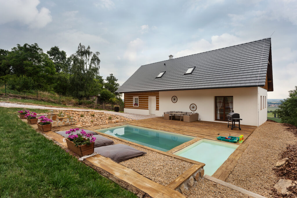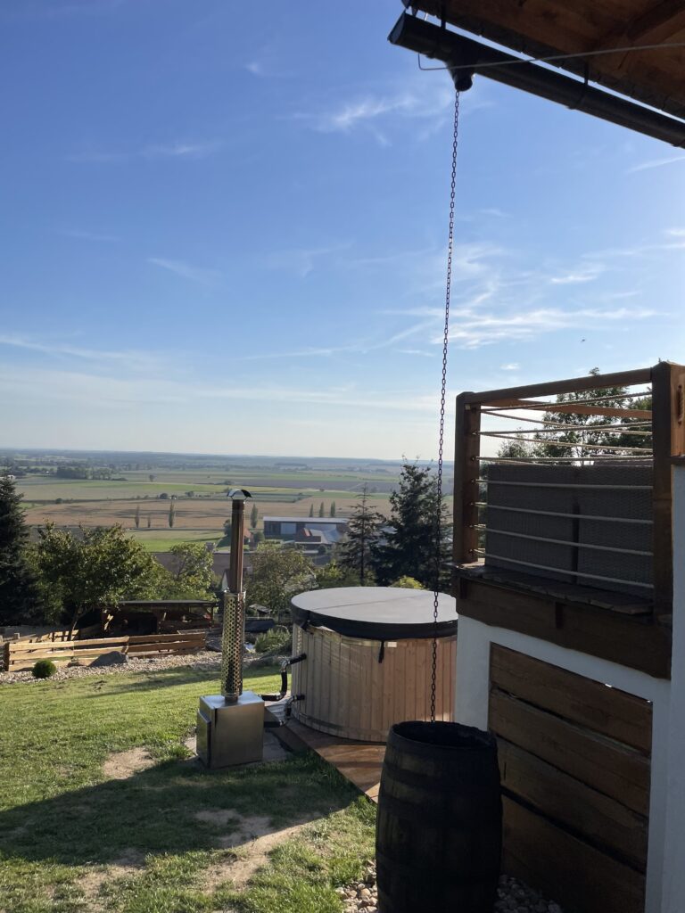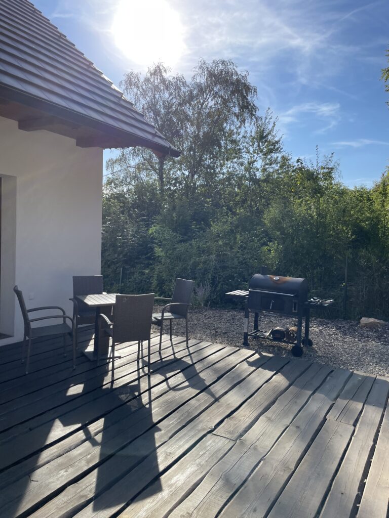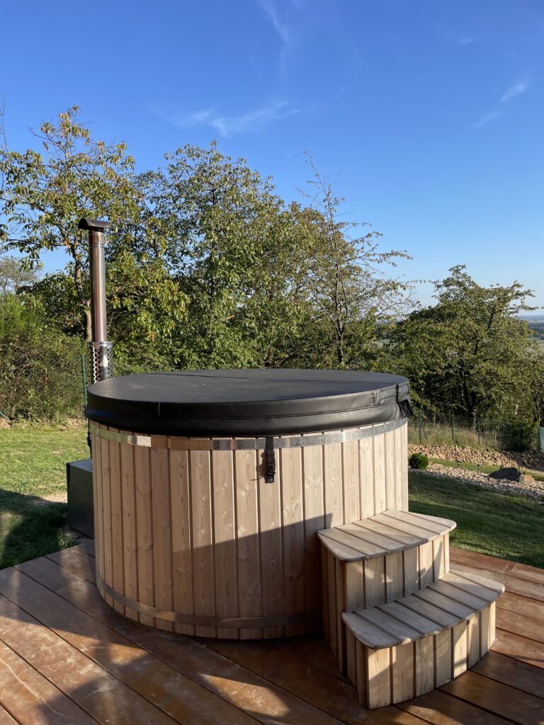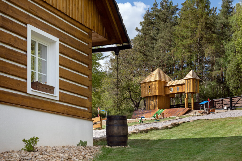 Když dorazíte v létě a bude vám přát počasí, vyzkoušejte nejen posezení na terase s grilem, ale hlavně bazén s brouzdalištěm pro nejmenší hned u chaloupky. Nafukovací hračky jsou též k dispozici :). Ve spodní části chaloupky čeká relax pro rodiče – koupací vířivý soud a sauna s krásným výhled.