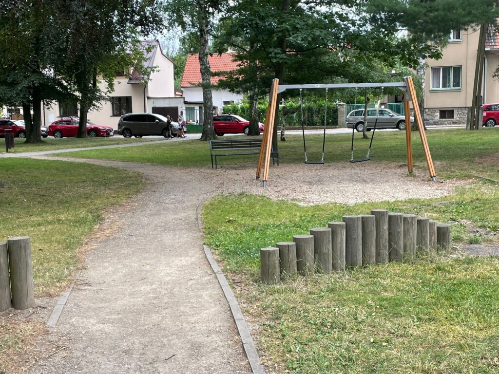 Jestli nemáte ještě DĚTSKÝCH HŘIŠTÍ dost vydejte se na to NA OHRADÁCH. Je ukryté trochu mezi činžovními domy, ale pokud se podíváte na naší mapičku, nebo se zeptáte někoho z místních, určitě Vám rádi poradí. Hřiště je na hezké zelené ploše, je už pro trochu větší děti a mimo klouzačku a prolézačky tu najdete také lanovku.