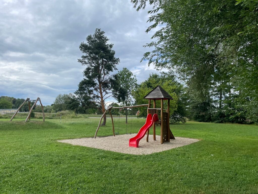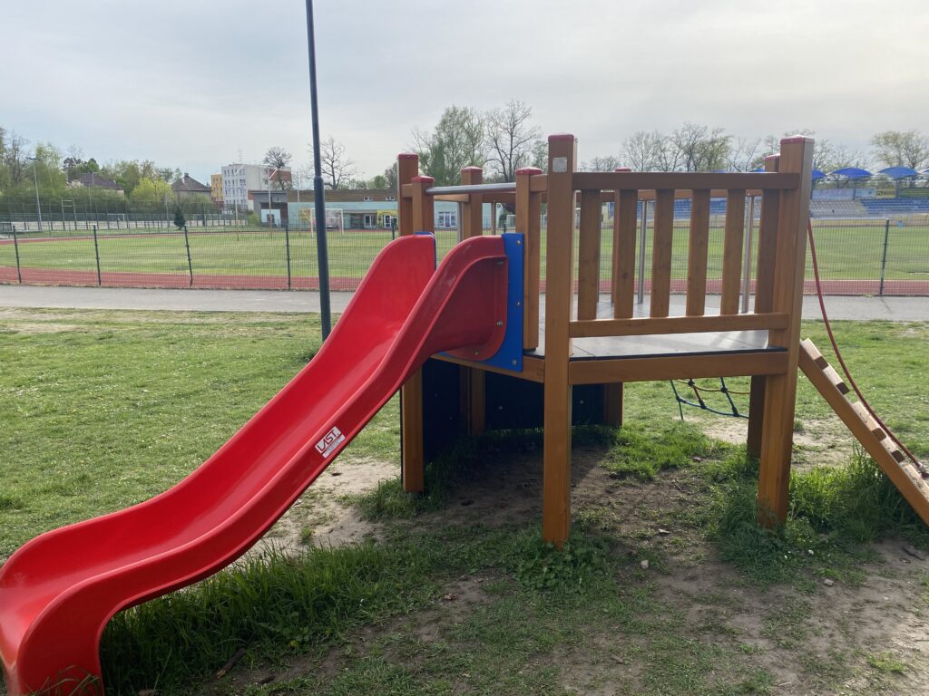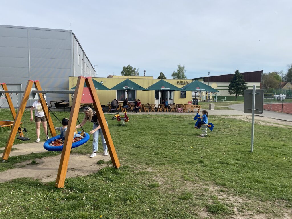 Další zastávkou může být hned HŘIŠTĚ V AREÁLU SPORTOVNÍHO STADIONU, kam vstoupíte vrátky vedle Relaxu. Hřiště je ideální pro menší děti.