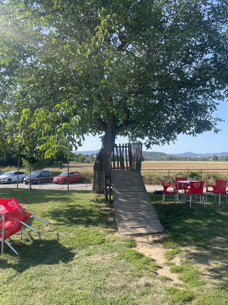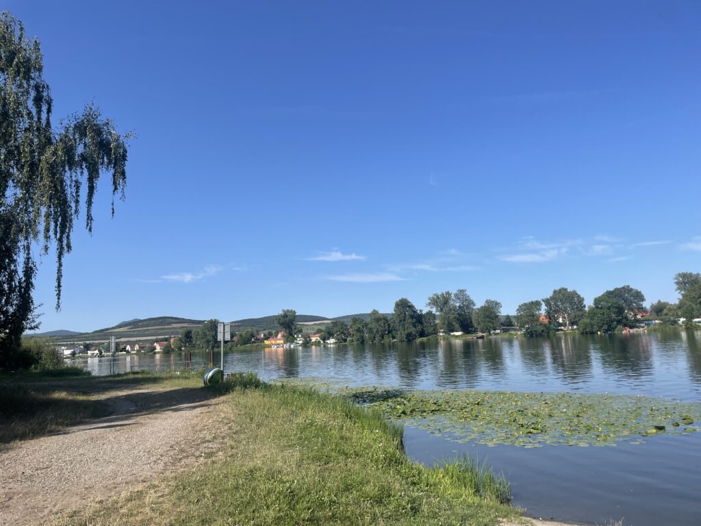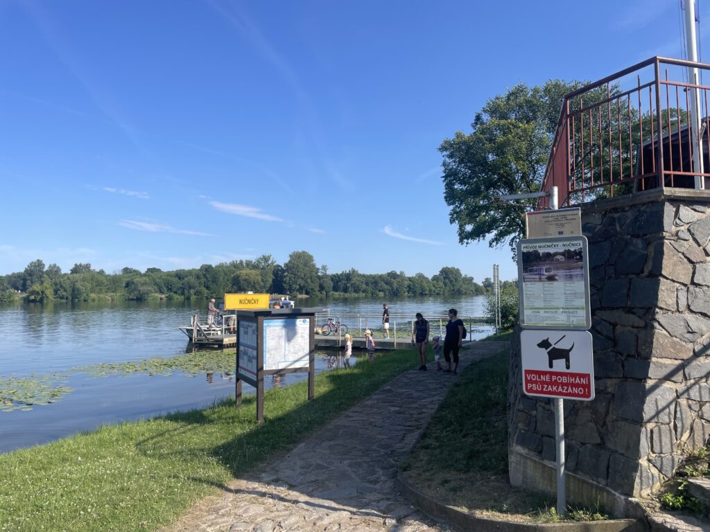Návštěvu zvířátek jsme ještě spojili s malým výletem na zmrzku a jízdou přívozem na druhou stranu řeky, kde je parádní hřiště i občerstvení. Přívoz je na mapě značený jako Nučnice-Nučničky a zmrzlina jako Zmrzlinový domek Nučnice.