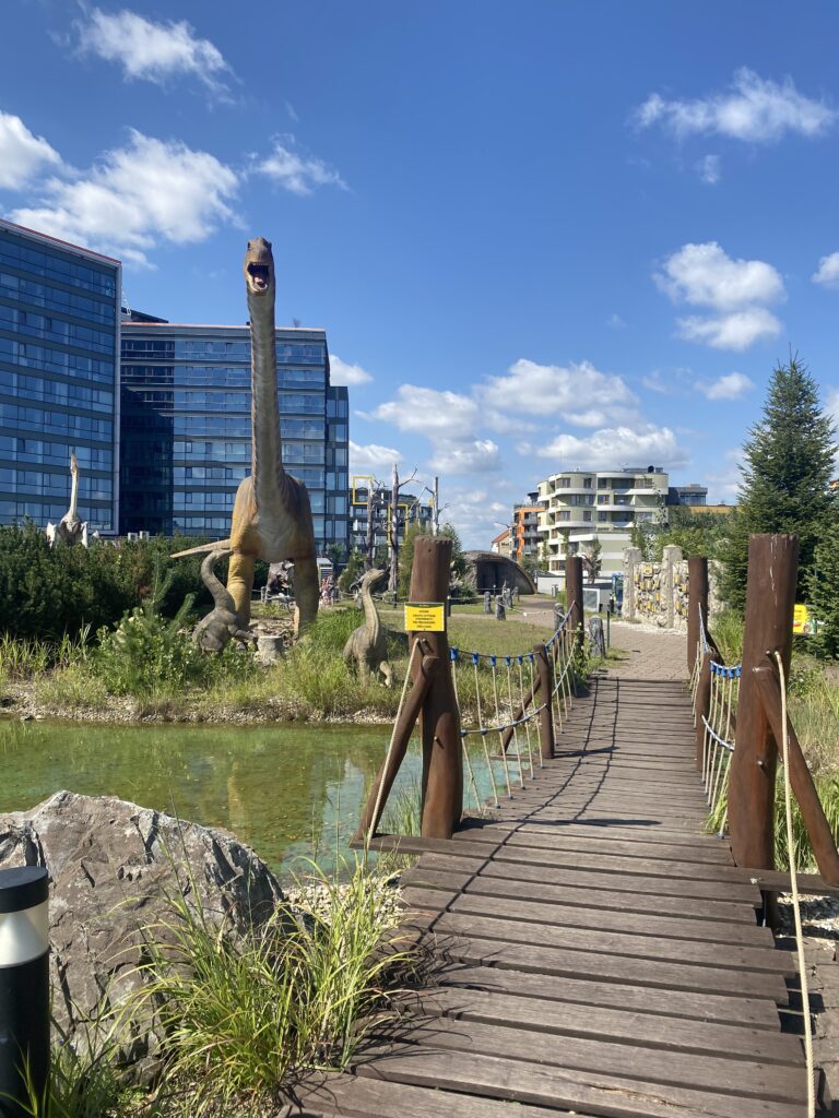 Po návštěvě DinoLive jsme se rozhodli navštívit i druhý dinosauří park, který se v Praze nachází a to Dinopark Harfa Praha. Podle recenzí jsme očekávali že velikost tohoto parku je mnohem menší než ten, který se nachází v areálu vodní nádrže Džbán. Nevýhodou je určitě také to, že se Dinopark nachází na střeše obchodního domu, proto nelze očekávat, že budou modely dinosaurů zasazeny v přírodě. I přes zmíněné nevýhody jsme si v DinoParku užili moc hezké dopoledne ve všední den s minimem lidí.